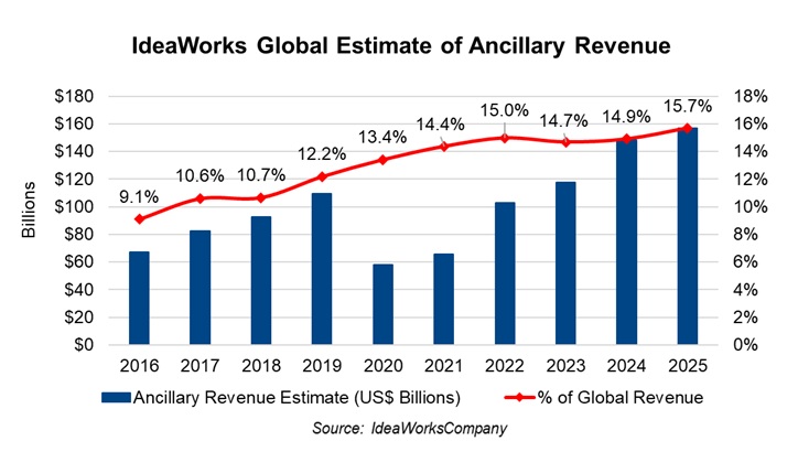 Dans les bureaux des directions financières des compagnies aériennes du monde entier, les chiffres parlent d’eux-mêmes. Les revenus ancillaires s’apprêtent à atteindre un montant record de 157 milliards de dollars en 2025, selon les projections publiées par IdeaWorksCompany, cabinet de conseil reconnu comme la référence mondiale en matière d’analyse des revenus ancillaires aériens. Cette performance marque une progression de 8,6 milliards par rapport aux 148,4 milliards enregistrés en 2024 et représente plus du double des 67,4 milliards générés en 2016. Cette évolution spectaculaire témoigne d’une transformation profonde et durable du modèle économique du transport aérien à l’échelle planétaire.
